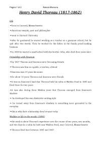 Study Notes Of Henry David Thoreau Study Notes English Docsity